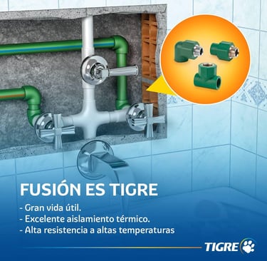 Trabajamos con sistema de termofusión Tigre, una de las marcas líderes en conducción de agua a nivel internacional